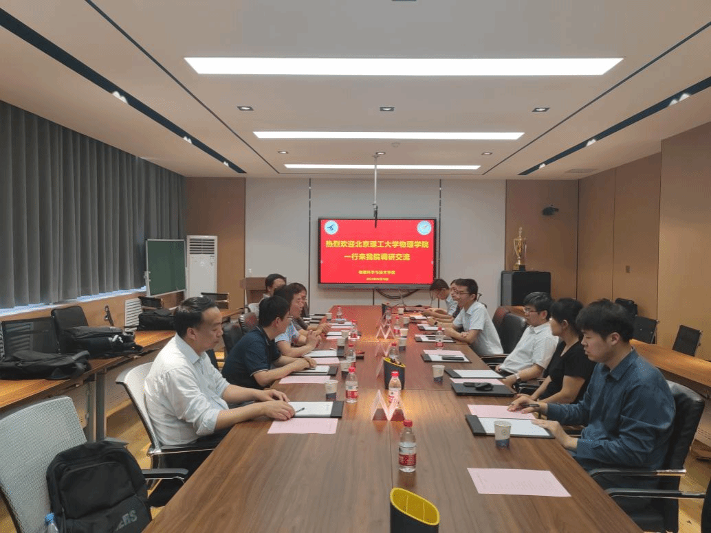 6月18日下午,北京理工大学物理学院副院长李军刚、量子实验中心副主任韩俊峰、物理实验教学中心主任刘伟、学科和专业责任教授王菲、教学委员会主任吕勇军一行来我院调研交流。学院党委书记晁小荣、副院长宋坤、党支部书记毛珊、物理实验教学中心主任杨超舜、物理学科竞赛创新实践基地负责人翟世龙、近代物理实验课程教师张煜浦、本科教学秘书李转、付聪慧参加了会议。