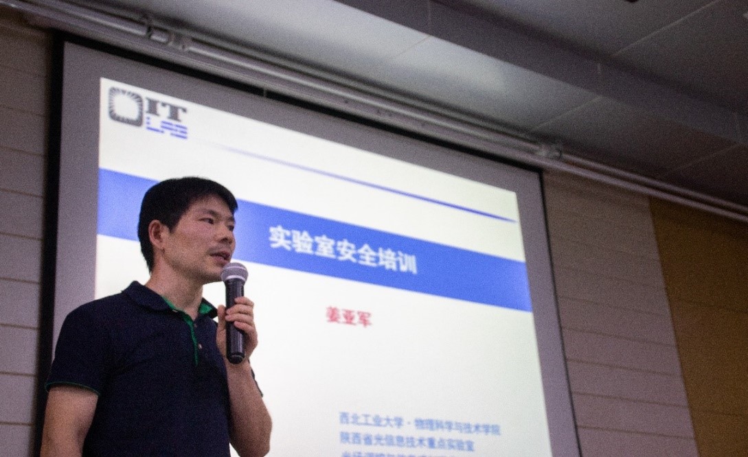 随后,姜亚军副研究员对参加此次研究生学术周的全体师生进行了实验室安全教育培训。从加强实验室安全的意识、实验室危化品管理、实验室用电安全、实验室特种设备安全管理、如何维护自身安全、实验室安全的规定等几个部分进行了详细介绍。