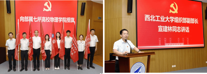 接着,举行了授旗仪式,永利集团组织部副部长宣建林分别向部属七所高校物理学院授旗,这是红色教育主题实践活动的标志,更是我们精神的指引和行动的号角。最后,他对延安丰富的红色资源和历史文化进行了详细介绍,并强调了“我要进延安”红色教育的重要性,为广大师生未来在延安的学习指明了方向、注入了动力。