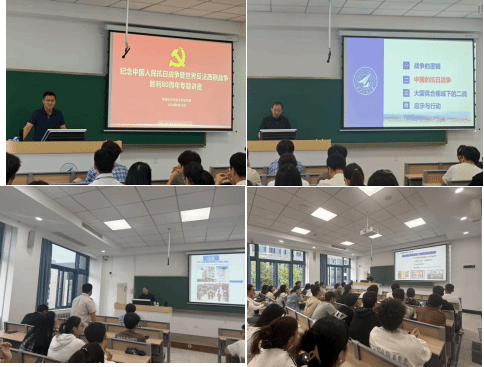 9月10日上午,在长安校区教学西楼B3-305, 学院特邀马克思主义学院刘向阳教授作《世界大国竞合格局下的中国抗日战争》专题讲座。学院党委副书记樊文迪、组织员杨文琪、部分党员、2025级部分新生参加了本次讲座。讲座中,刘向阳教授从战争的逻辑、中国的抗日战争、大国竞合视域下的二战及启示与行动等四方面层层展开,史料结合,娓娓道来,宏观梳理了中国抗战的世界坐标,提炼了“落后就要挨打,自强方能复兴”的历史镜鉴。刘教授以宏阔的国际视角、翔实的史料案例,深刻阐释中国抗战的世界意义与当代启示。现场掌声迭起,师生们一致表示,将立足专业所学,在新时代新征程中勇担强国建设、民族复兴的青春使命。