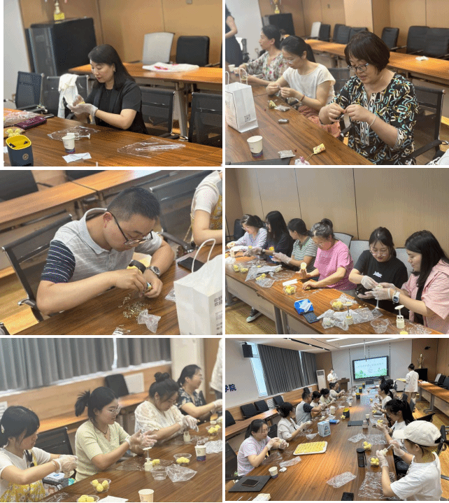 主题+实践活动,感受传统文化魅力。学院邀请经验丰富的指导老师向教师们介绍了端午节的形成和习俗,讲解了香囊的制作流程和绿豆糕的制作方法,随后,在场教师们纷纷动手体验,在实践中感受博大精深的中华优秀传统文化,学习革命先辈艰苦朴素、迎难而上的作风,继承和弘扬家国情怀、民族精神,让中华文化展现出永久魅力和时代风采。