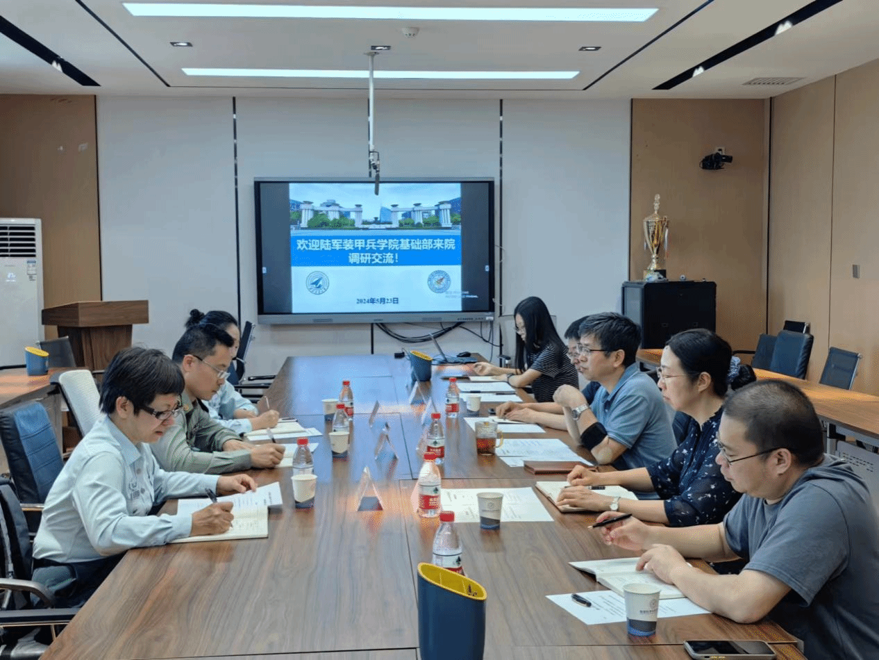 5月23日上午,中国人民解放军陆军装甲兵学院基础部副主任亢金龙、理化教研室副主任司宇、理化教研室副教授王俊玲一行来我院调研交流。学院党委书记晁小荣、大学物理课程教师代表鲁晓宇、大学物理实验课程教师代表侯建平、王民及办公室相关人员参加了会议。