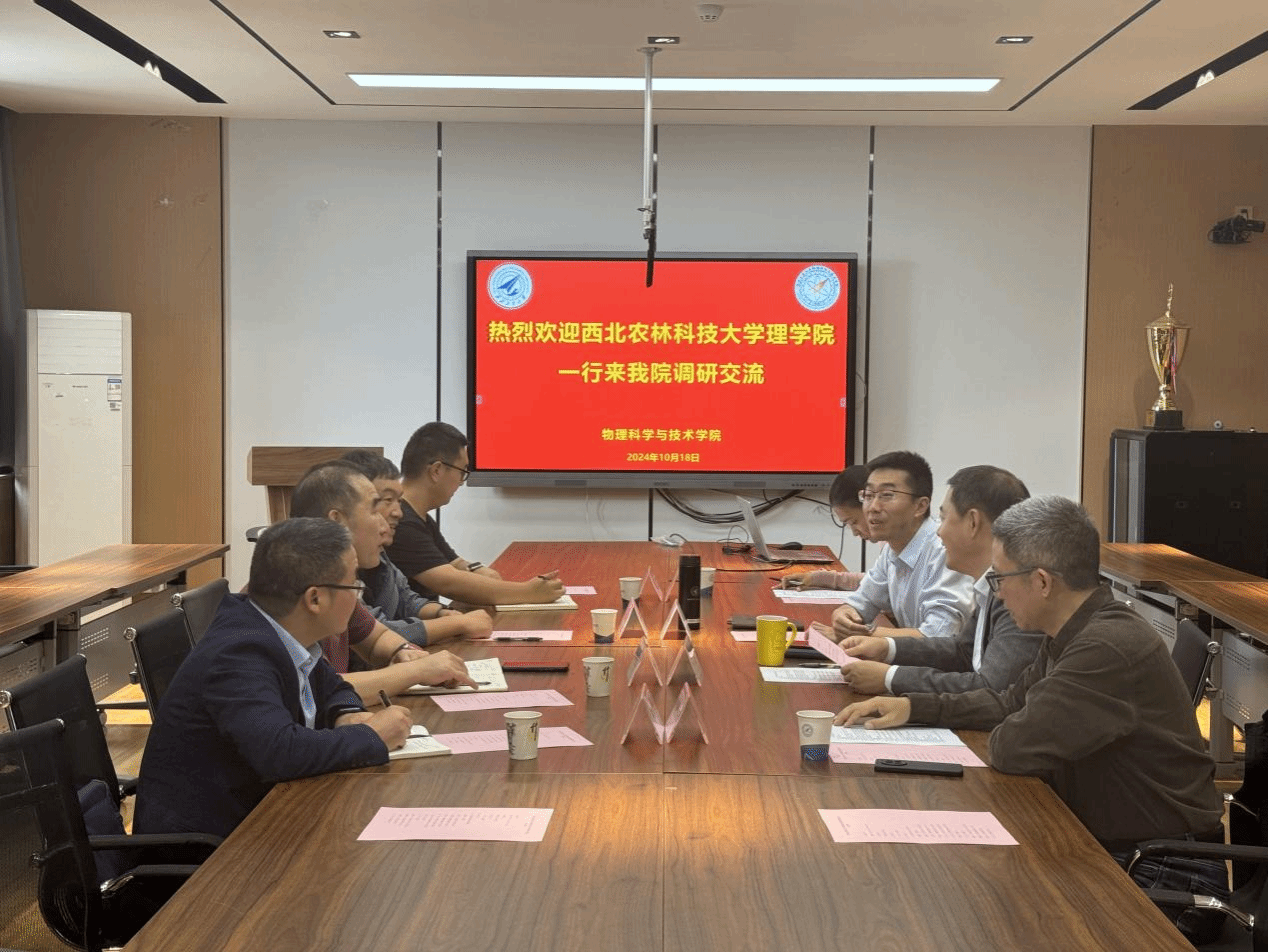 10月18日下午,西北农林科技大学理学院副院长解迎革、光电信息与工程系主任任文艺、物理实验教学中心副主任李有为、光电信息工程专硕点秘书段栋一行来我院调研交流。学院副院长尹剑波与宋坤、光电信息科学与工程系主任杨德兴、物理实验教学中心主任杨超舜、研究生教学秘书张灵静、本科教学秘书付聪慧与李转参加了会议。