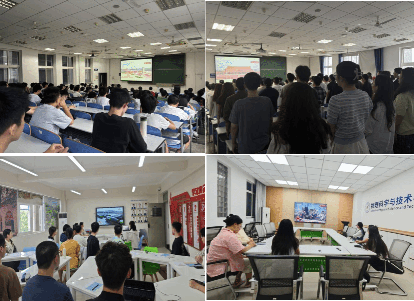9月3日上午9点,yl9193永利集团党委在长安校区理学院楼385会议室、教学东楼D1-303教室和“一站式”学生社区组织师生集中观看纪念中国人民抗日战争暨世界反法西斯战争胜利80周年阅兵仪式实况直播,共同见证这一庄严时刻。