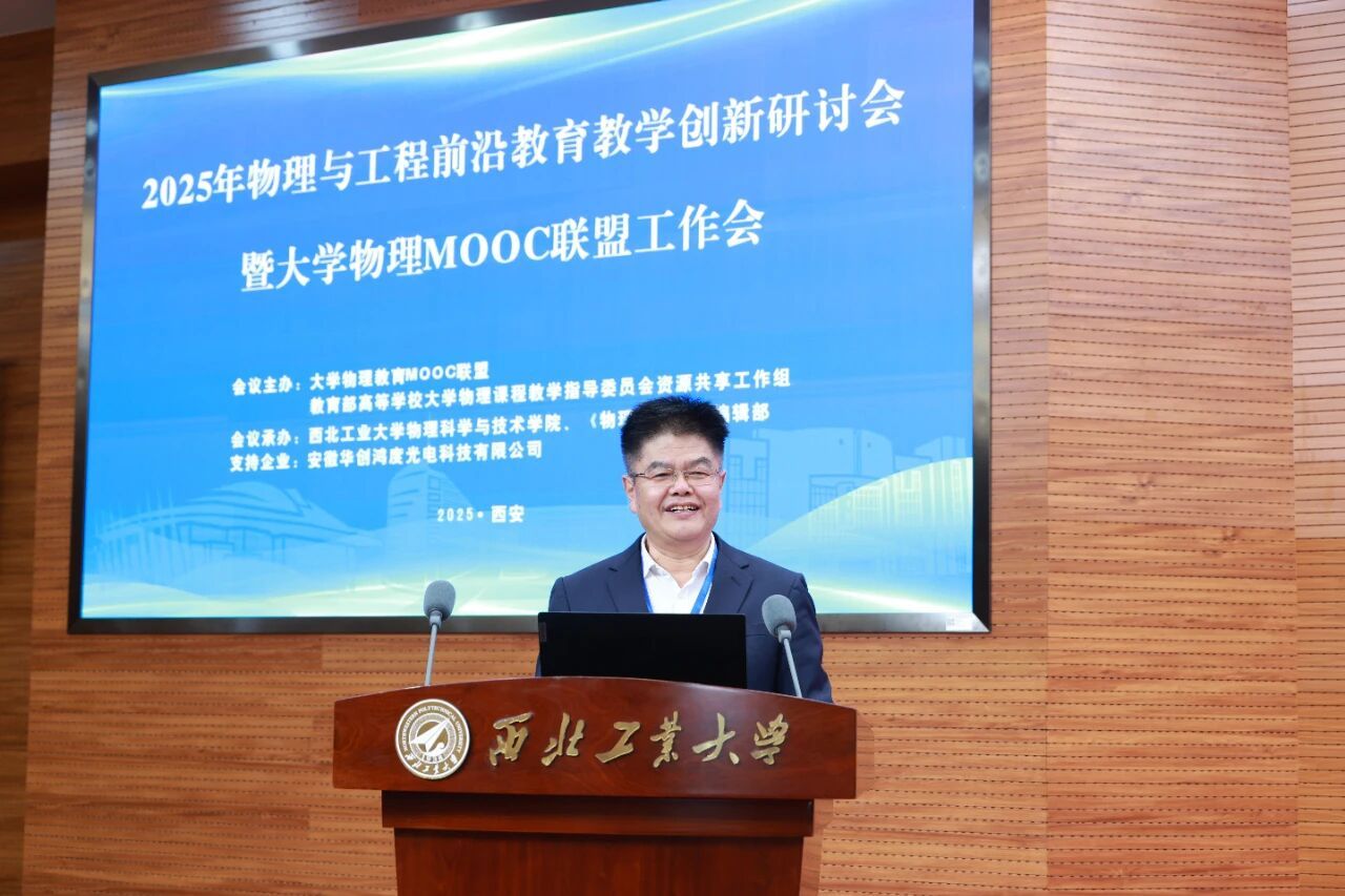 大学物理课程教指委主任委员、清华大学物理系王青教授代表主办单位致辞,向承办方、支持企业及与会嘉宾致谢。他表示,本次会议聚焦人工智能时代背景,旨在推动物理与工程教育的深度融合,促进MOOC资源的共建共享,切实提升学生解决工程问题的基础物理能力,从而为培养新时代拔尖创新人才贡献力量。