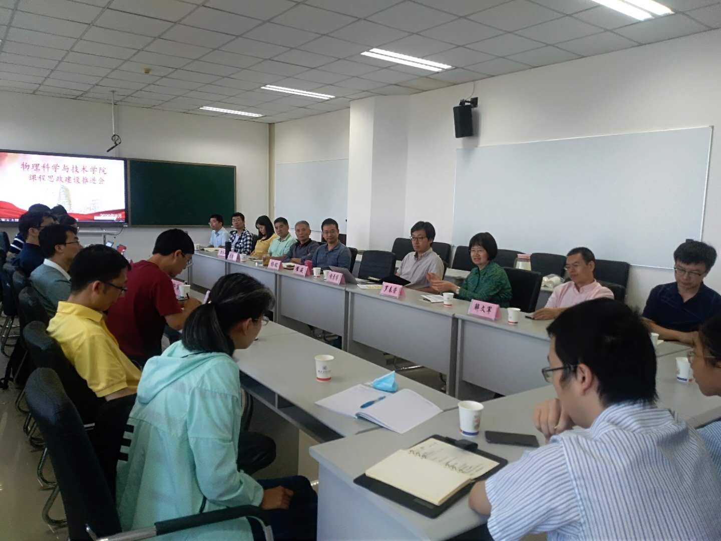 为全面贯彻落实教育部《高等学校课程思政建设指导纲要》和汪校长在新学期干部大会讲话精神,全面推进课程思政建设,9月18日上午,物理学院举行课程思政建设推进大会。会议邀请了马克思主义学院书记吴闻川和陈诚平、折军两位教师代表,特别邀请“陕西省高校课程思政教学能手”、永利集团“三育人”先进个人数学与统计学院潘璐璐老师为大家分享她的课程思政心得。学院领导杨铭、翟薇、谢彦博,省教学名师罗春荣,公共课负责人、专业负责人、教师代表、辅导员代表和近年新入职教师30余人参加会议。