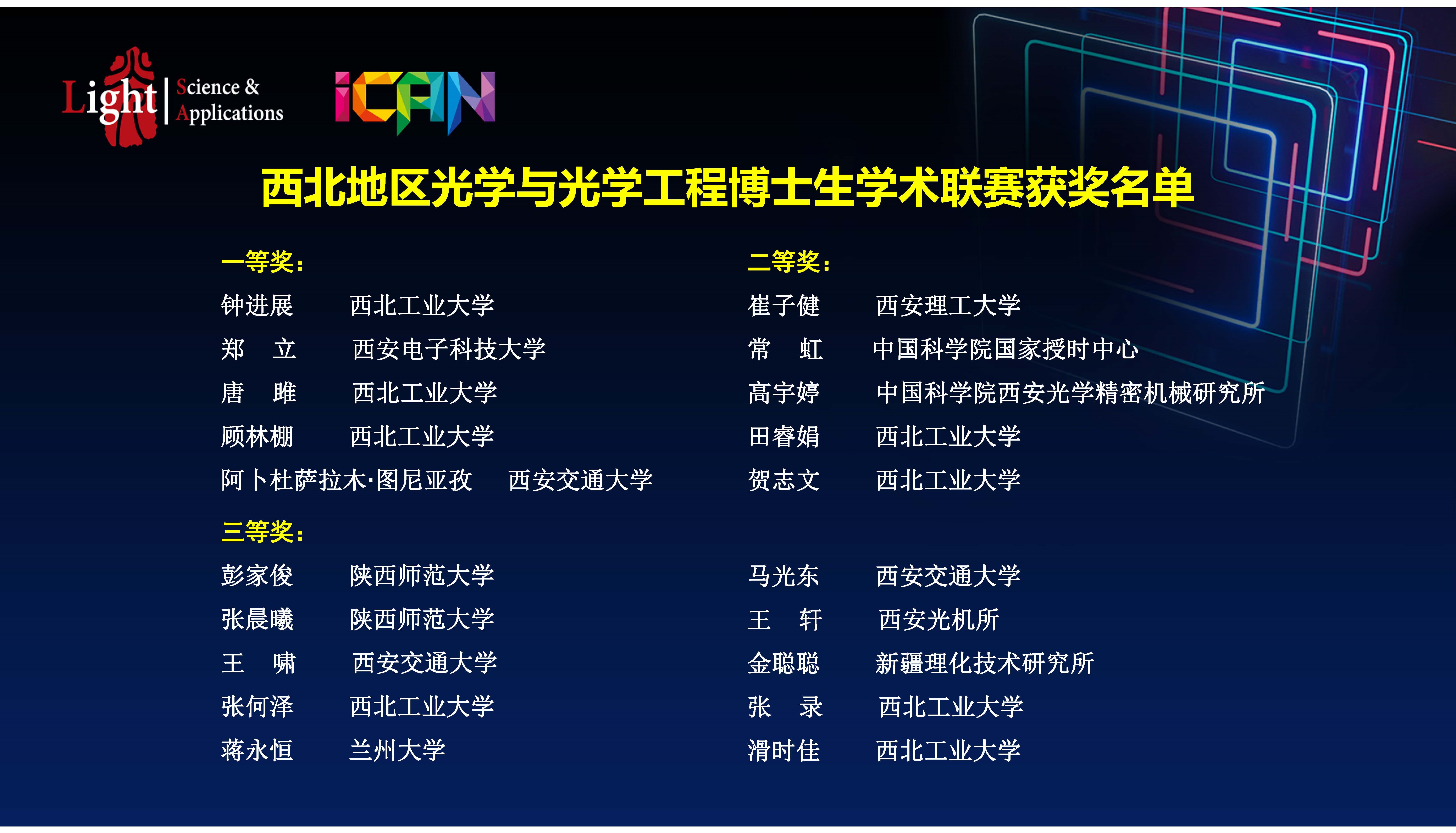 2月26日,由Light学术出版中心和iCAN联合主办、永利集团联合陕西省光学学会、物理学会承办的全国光学与光学工程博士生学术联赛西北赛区(陕西、甘肃、宁夏、青海、新疆)决赛落下帷幕。