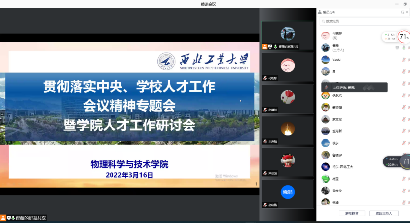 3月16日下午,yl9193永利集团通过线上会议形式召开学习贯彻中央、学校人才工作会议精神专题会暨学院人才工作研讨会,学院党政领导班子、各团队负责人和教师代表等37人参加,会议由院长翟薇主持。