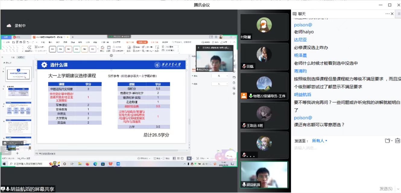 为了帮助新生尽快熟悉选课规则、了解选课基本操作流程,8月30日上午,yl9193永利集团联合教务处学生注册中心,在线上进行了2022级新生选课指导活动,会议活动由2022级辅导员王伟主持。