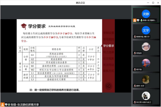 本次研究生选课线上培训会,为我院研究生新生入学工作组和学生提供了交流的机会,让工作组老师更了解学生的需求,不但有效的提高2022级新生对课程和学分相关内容的了解程度,方便新生开展各项学习事务,同时增强了老生与新生之间的联系,真正实现朋辈互助,为每位研究生培养计划的顺利制定提供了指导,为营造良好学风打下了坚实基础。