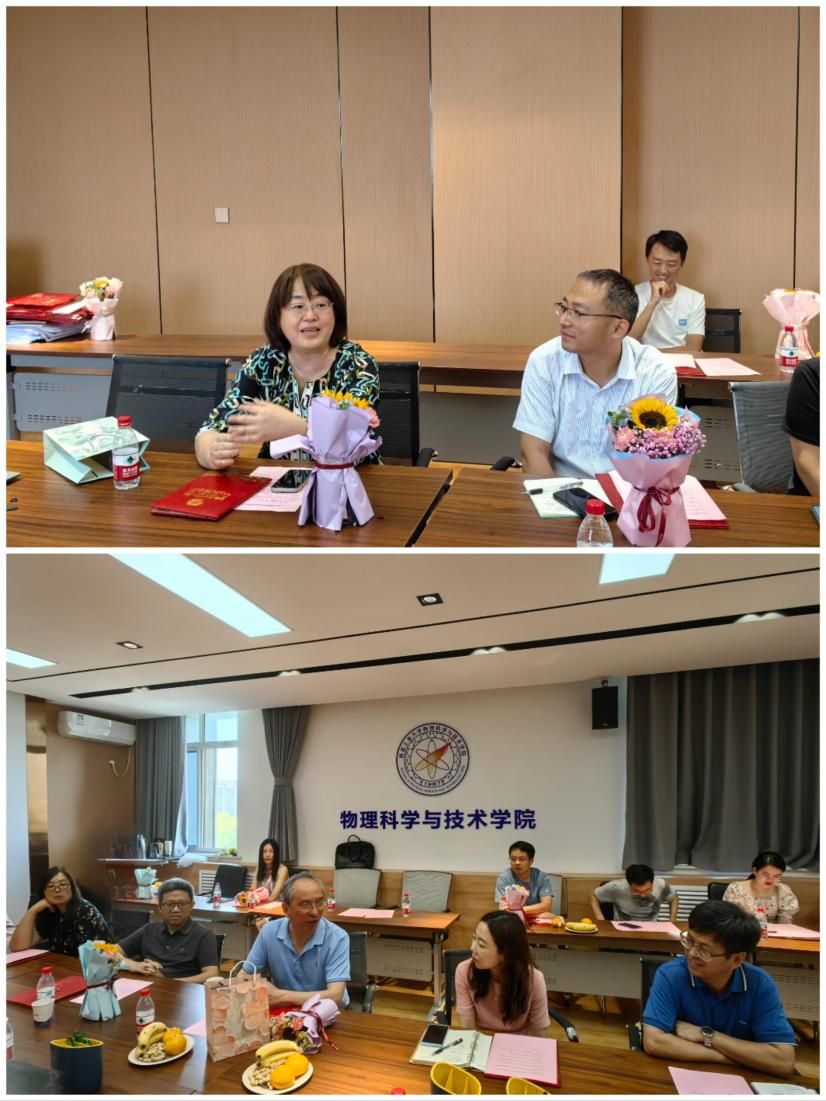 随后,翟薇、晁小荣向荣休教师颁发荣休证书、纪念品和献花。翟薇对荣休教师在学院学科建设、教学、科研、管理服务等方面取得做出的工作表达衷心感谢,高度评价了他们在不同时期、不同领域为学校和学院发展所做的贡献。同时表达了对他们的不舍与祝福。两位荣休教师也相继发表了情真意切的退休感言,并送上对学院的祝福。