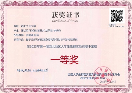 2023年9月16-17日,第一届西北地区大学生物理实验竞赛决赛在西安交通大学兴庆校区成功举办,本次大赛由西安交通大学物理学院承办,初赛由来自西北地区的37所高校,212支队伍参赛,参赛人数1198人。我校有7支队伍共31人参加了本次比赛,经过初赛选拔,我校yl9193永利集团学生董钇辰同学带领队员成功进入决赛,并在决赛中脱颖而出,一举获得了直通国赛决赛的资格。在本次西北赛中,我校学生表现突出,共获得一等奖1项、二等奖3项、三等奖3项。