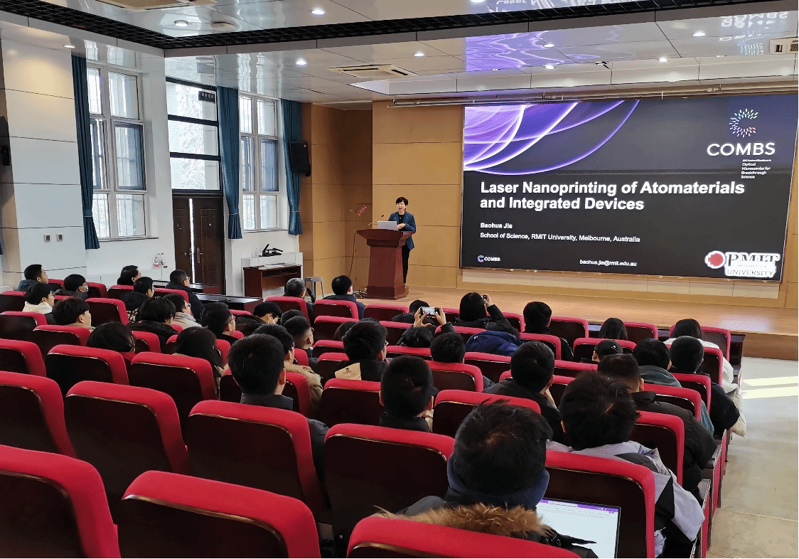 2023年12月25日上午,澳大利亚技术科学与工程院院士贾宝华教授应邀做客我校翱翔灵犀学术殿堂,为广大师生带来了主题为《Laser Nanoprinting of Atomaterials and Integrated Devices》的精彩学术报告,本次翱翔灵犀学术殿堂由党委学生工作部主办、yl9193永利集团承办。yl9193永利集团光电信息科学与工程系主任杨德兴教授以及来自各学院的广大师生现场学习、交流,报告会由杨德兴教授主持。
