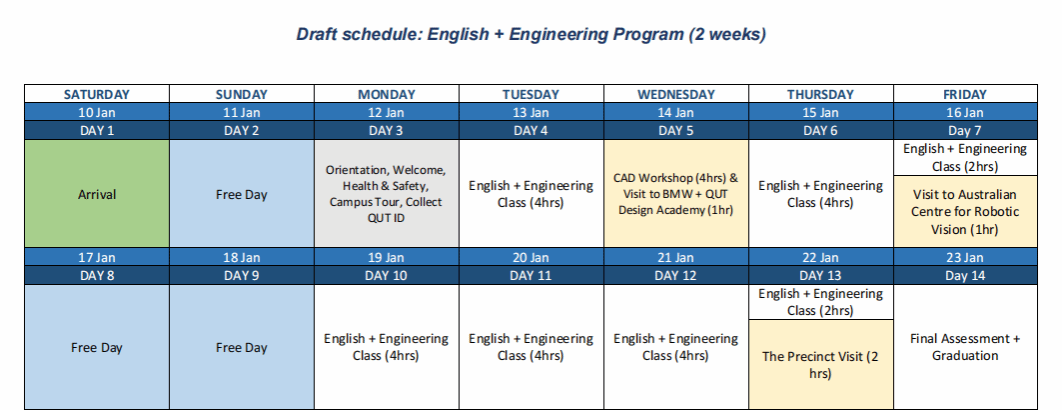 本次为期两周的项目旨在进一步提升参与者的英语水平,使他们能够自信地参与圆桌讨论并发表科学演讲。学生们还将参与一整天的计算机辅助设计(CAD)工作坊,通过Fusion软件程序探索并了解工程在实际生活中的应用。此外,他们还将有机会与位于The Precinct和BMW+QUT设计学院的专业团队及同行进行交流。