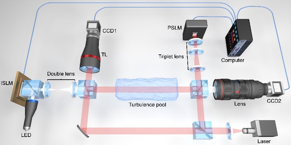 大气湍流或生物组织等介质会引起光场波前畸变,从而导致成像系统性能严重下降。为消除波前畸变影响,通常需要使用波前传感器获取波前畸变信息,并使用变形镜或空间光调制器对波前畸变进行矫正,以获得清晰的目标图像。这种自适应光学技术被广泛应用于天文观测、自由空间光通信、眼底成像等。然而,波前传感器成本高昂,且往往需要额外的引导光源。