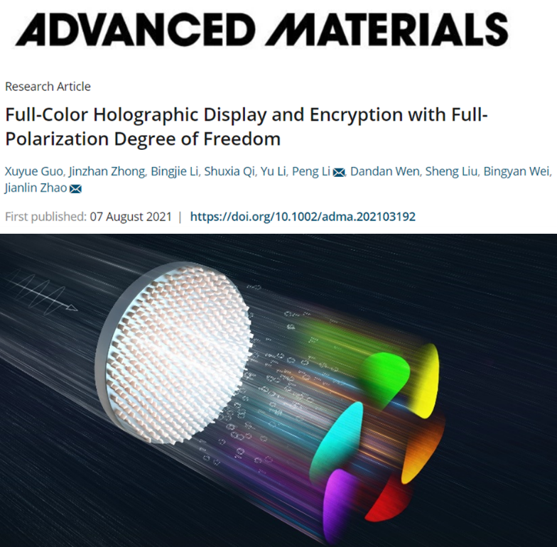 近日,yl9193永利集团赵建林教授团队,在全偏振自由度调控的彩色全息显示与加密方面取得重要研究进展。相关成果以“Full-Color Holographic Display and Encryption with Full-Polarization Degree of Freedom”为题发表于国际顶级学术期刊《Advanced Materials》(DOI: https://doi.org/10.1002/adma.202103192)。